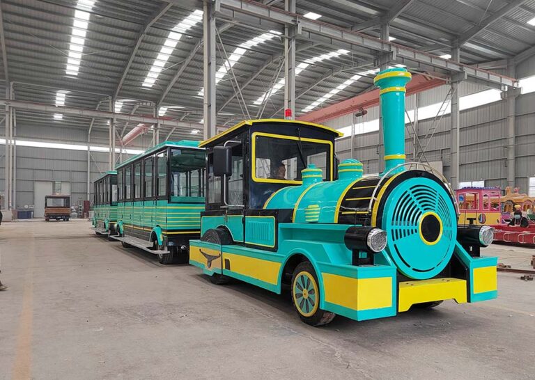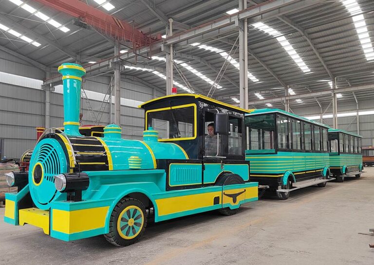 The body of this 58-seat trackless sightseeing train is a fusion of high-quality steel and fiberglass. The steel is strong and durable, allowing it to smoothly traverse various terrains, while the fiberglass provides a polished and modern aesthetic. The handrails are made of anti-corrosion wood, which enhances the safety and natural charm of the train.
