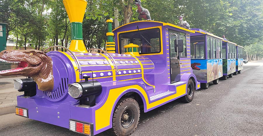 The Dinosaur Trackless Train is a sightseeing amusement ride designed with a dinosaur theme, combining elements of sightseeing, interaction, and entertainment. The train cars feature realistic dinosaur shapes, complemented by exquisite simulated paintwork to create a rich Jurassic atmosphere, providing visitors with an immersive experience. Powered by eco-friendly electric systems, the train operates without the need for tracks, offering flexible mobility to adapt to various terrains. It is especially suitable for theme parks, zoos, shopping malls, and large event venues.