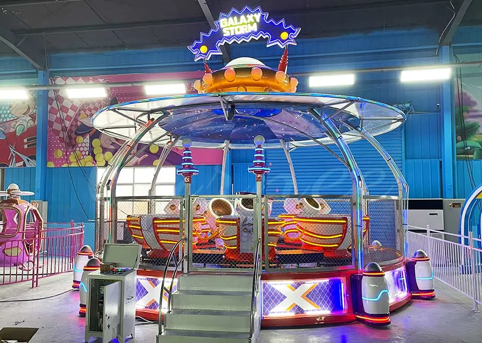 - Luzes e sons impressionantes: A atração do parque de diversões Galaxy Storm é equipada com luzes LED brilhantes e efeitos sonoros dinâmicos. Esses recursos aprimoram a experiência, tornando-a ainda mais emocionante para visitantes de todas as idades.